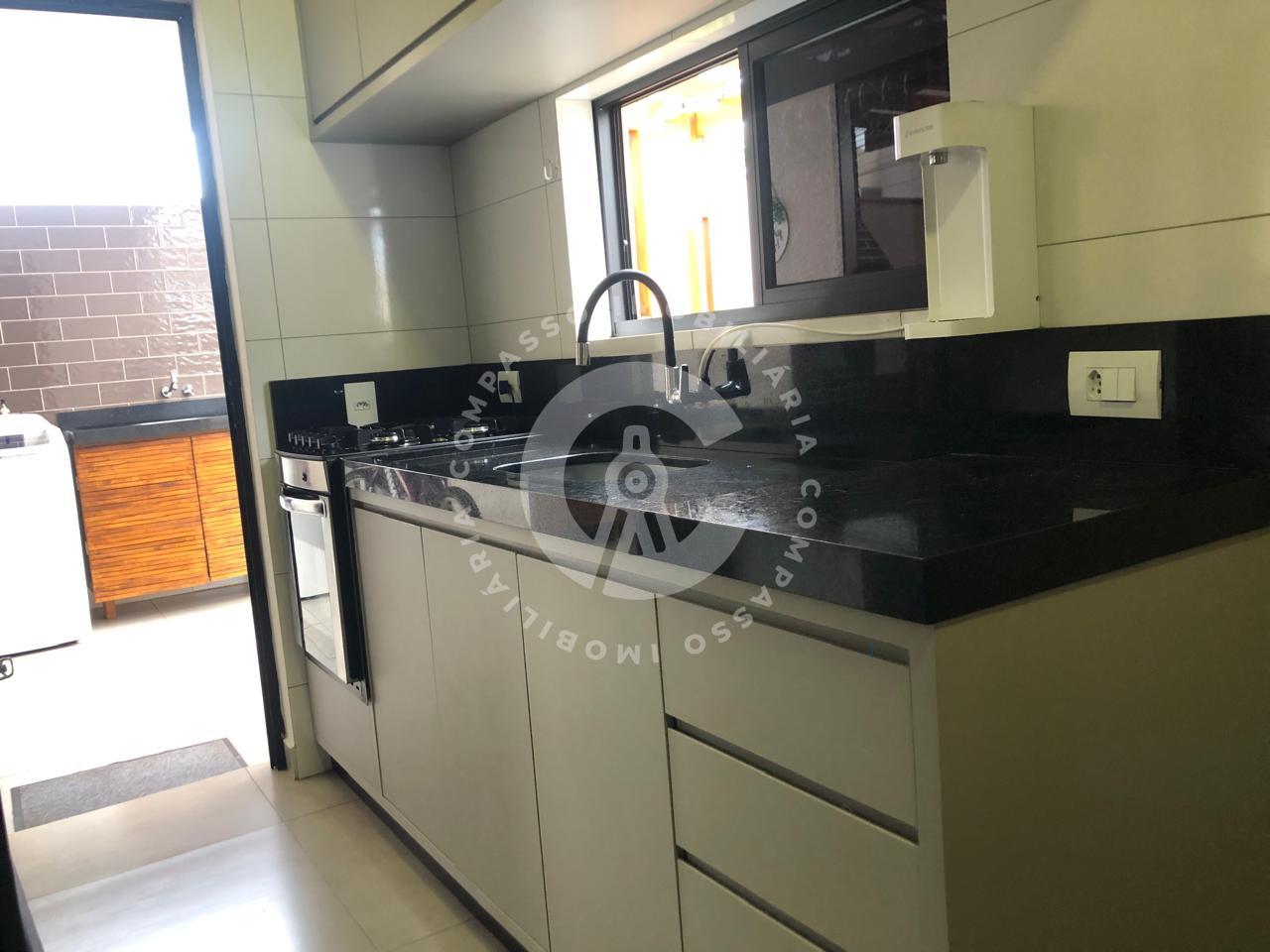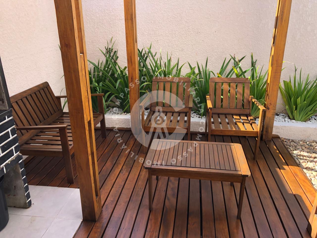 Ficam os móveis planejados da cozinha, dos banheiros, móveis de madeira do Pergolado e ar condicionado.