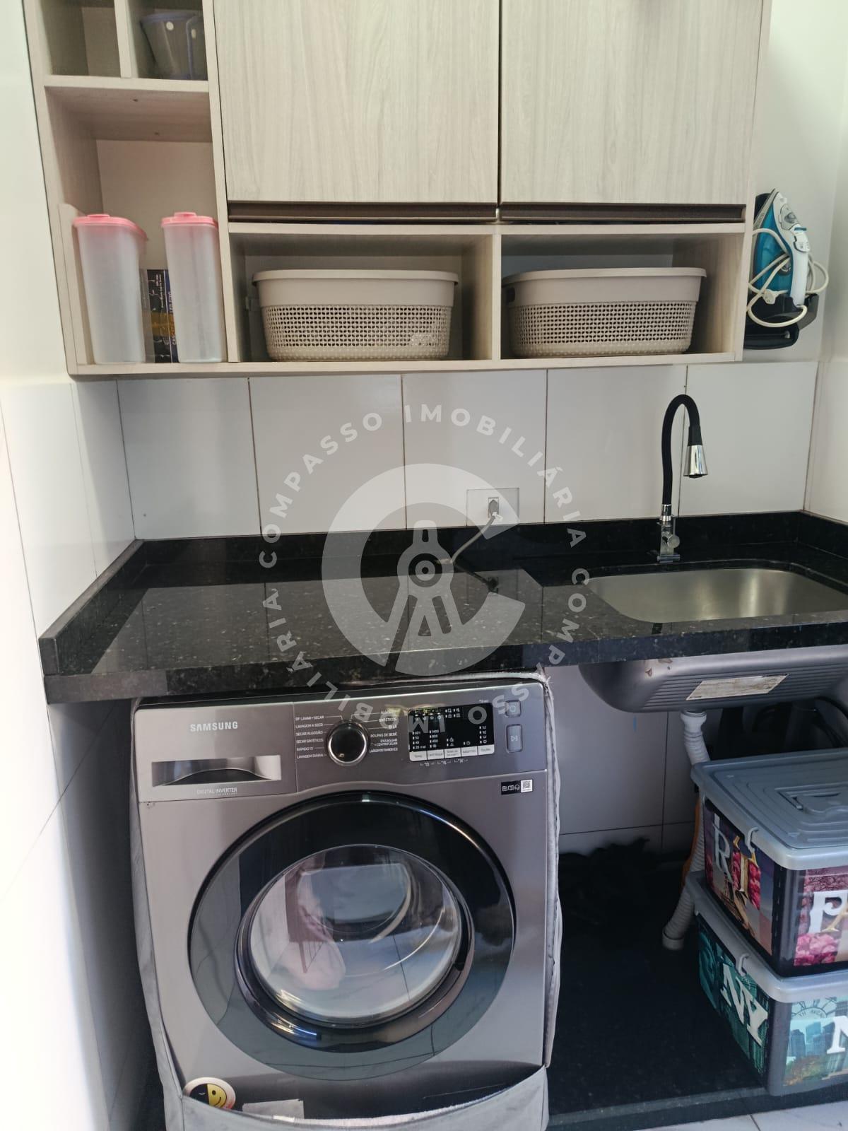 - Lavanderia coberta c/ tanque tampo em mármore + Armário
